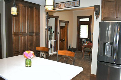 The addition of matching cabinetry for a pantry cabinet created much needed storage so often lacking in older homes.